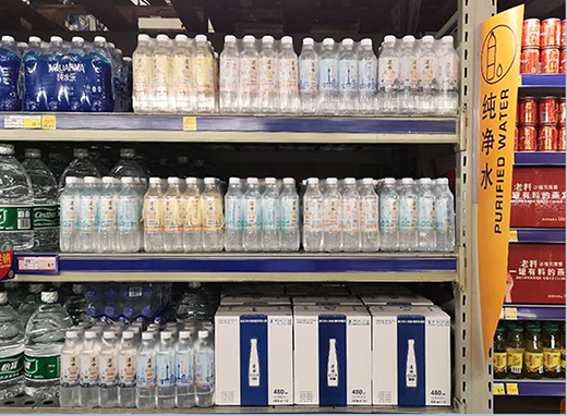 6月6日,水務集團推出的“?h水1906”飲用純凈水品牌正式在麥德龍銷售。這是“?h水1906”飲用純凈水首次布局線下超市渠道。 目前”?h水1906“以整箱形式銷售,上架銷售有兩款規格飲用純凈水,其中“長江之心”高端款式每瓶480毫升每箱12瓶,售價48元/箱,單價4元/瓶;“武漢映象”普通款式每瓶500毫升每箱12瓶,售價30元/箱,單價2.5元/瓶。