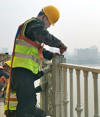 修復還原在交通事故中遺失到長江里的一塊木棉花鑄鐵雕花,成為本次修復工作的最大難題。遵循文物修復“不改變文物原狀”和“最小干預”的原則,此次修復工作堅持“原材料、原形制、原工藝、原做法”來進行。為此,天時公司對木棉花鑄鐵雕花,采用3D打印技術制模復原后,按照60年前的老工藝進行安裝。同時,其他受損部位也將放棄使用現在普遍用高精焊接技術,而采用傳統的錨固方式進行修復。