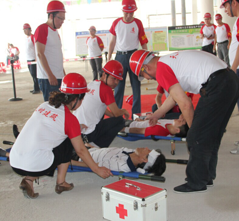此次實戰演練模擬了施工現場觸電事故及腳手架垮塌的突發事件,旨在進一步完善建筑企業應急救援預案,不斷提高施工現場事故應急處置能力,增強從業人員現場救援水平。天時公司救援人員在總指揮徐漢新的帶領下緊張有序地開展了斷電、搶救、上報事故等應急救援程序。整場實戰演練持續了近30分鐘。