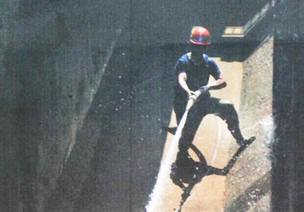 7月13日8時至18時,擁有82年歷史的水務集團平湖門水廠一組濾池停產檢修。清洗隊隊長彭懷玉帶著他的團隊,早早地來到廠區,對濾池進行清洗。