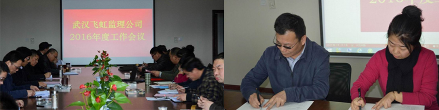 3月11日下午,飛虹監理公司召開2016年度工作大會。會議全面部署公司經營發展、安全生產和黨建及黨風廉政建設工作。 會上,何剛雁總經理作了2016年工作要點的報告,部署了2016年公司重點工作。2016年圍繞抓好“十三五”戰略規劃開局,全力推進經營業務工作,努力提升項目管理和內部管理水平,狠抓安全管理、抓好黨群工作及企業文化建設工作等5大部分17項重點工作。公司董事長沈福喜與部門及監理項目部代表簽訂了安全生產、經營目標責任書。經營管理部、工程監理部、楊泗港大橋項目部等6個責任主體代表分別進行了表態發言。