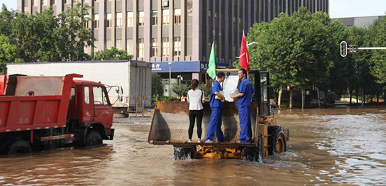 7日,暴雨后的武漢初晴,但藏龍島居民仍被水圍困。在了解到王女士的用氣難題后,天然氣公司組織表具維修人員前往藏龍島。由于湯遜湖上通往藏龍島的橋被淹,該公司調(diào)集救生衣、救生圈和皮劃艇,準(zhǔn)備涉水過橋。因沒有牽引,擔(dān)心皮劃艇漂浮到湖中去,當(dāng)天下午六點,天然氣表具維修組長翟達決定和其他10位維修員一起淌水過橋。維修員穿上救生衣沿著橋身,一腳一步向前進,淌過及腰的深水過橋。
