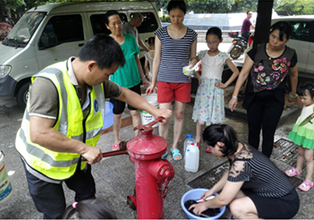 供水職工義務救援 烈日下為南湖居民供水