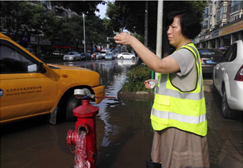 7月上旬,武漢持續特大暴雨,內澇外洪形勢嚴峻。江城南湖片區,更是遭遇嚴重漬水。部分小區因泵房設在地下車庫,泵機被淹不能正常供水,還有小區因為停電無法實現正常轉壓,高層居民用水困難。為盡快緩解南湖片區居民用水問題,7月8日開始,武昌供水部迅速組織60人的搶修隊,聯合漢口、漢陽支援的20人,調用4臺多功能搶修車和17臺抽水泵趕赴南湖片區展開供水義務搶修救援,進行漬水抽排作業和加裝臨時取水點。