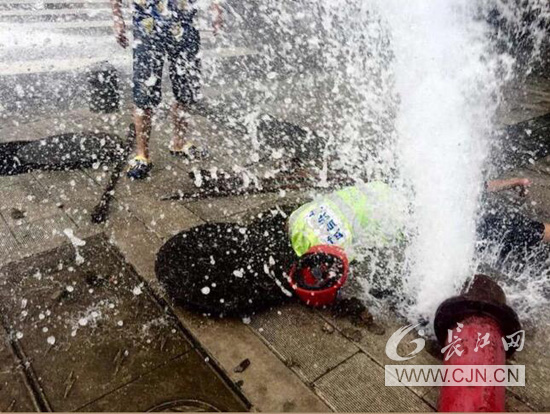 徐金奎毫不猶豫沖往水柱中央,由于沖擊力太大,徐金奎根本無法站穩(wěn)只能伏地前行!金師傅艱難地打開井蓋,發(fā)現(xiàn)井室里的覆蓋的淤泥影響查找閘門頂頭。徐金奎直接貼地徒手清除井室淤泥、垃圾,摸到頂頭后,迅速套上閘門鑰匙,果斷關(guān)閉了閘門!