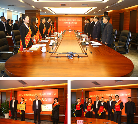 3月21日上午,鐵投公司在武漢控股大廈19樓會議室召開2017年工作大會。大會回顧總結2016年工作成績,安排部署2017年各項工作任務,命名表彰年度先進集體、先進個人、工會工作積極分子。動員和號召全體干部職工把智慧和力量凝聚到推動公司各項目標任務落實上來,聚焦到全面啟動武九鐵路北環線搬遷建設等核心工作上來。公司董事長楊楓,總經理汪國圣,副總經理王軼駿、陳勇、錢峰及全體干部職工參加會議。