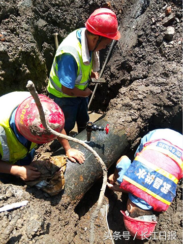 19日8時許,武昌中山路和平大道路口一根400mm管道突發管漏,市自來水公司武昌供水部維修工程處接到工作單后立即趕往現場搶修。高溫下水務工作人員頭頂烈日,展開挖坑、排漬水、清淤等搶修工作。在現場確認維修點位關閥后,武昌管線所迅速安排消防水車現場待令以確保停水區域用戶的臨時供水。因突發性停水,和平大道中山路口至四馬路,玉橋新都小區一帶用戶受影響。經過全力搶修,當天15時恢復供水。