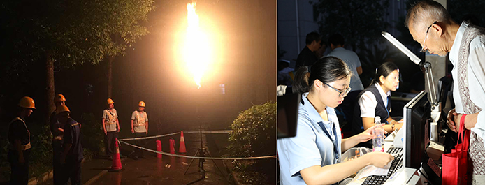 22日晚,天然氣公司工作人員冒雨在陸鷂小區(qū)涼亭里為居民辦理業(yè)務(wù);安檢員認(rèn)真檢查戶內(nèi)管線、燃?xì)馄骶撸檎野踩[患,并向居民宣傳天然氣安全用氣知識(shí),推廣公司延伸服務(wù)。