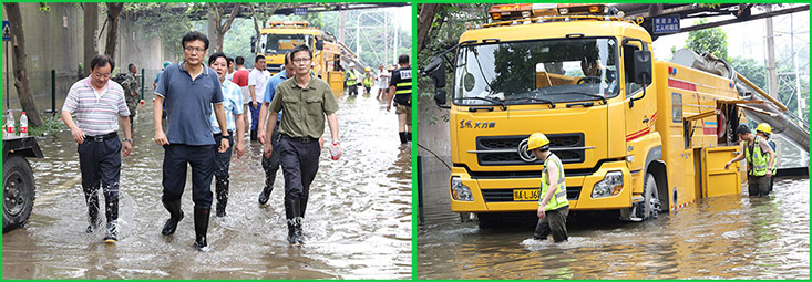 7月7日上午,在接到集團公司指令后,水務集團長江隧道公司立即將在武昌區域排漬接近尾聲的大型抽排設備“龍吸水”派往青山區21號公路漬水段。中午近13時到達現場后,集團公司總經理李兵及總經理助理陳春保立即向小分隊布置了搶排工作任務,勉勵大家發揚不怕苦不怕累的硬骨頭精神,繼續奮戰,為保衛市民的財產安全和城市安全再作貢獻。橋建集團搶險小分隊與“龍吸水”小分隊進行了對接,一起踏水進行實地勘察后,安排10多名隊員各就各位。這些隊員在其他地點排漬,連早飯都沒顧得上吃,但是個個仍然精神抖擻,有條不紊地開始忙碌起來。