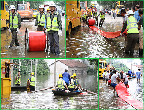 “龍吸水”慢慢往水里倒車,隊員們有的開始卸下笨重的接頭、寬厚的水帶;有的開始操作設備,有的乘小木劃子往深水區安放排水管。經過大家在一個小時的緊張忙碌,設備全部安裝完成試車后,于14時開始抽排漬水。14時30多,兩個小分隊的隊員才開始分批吃午飯。