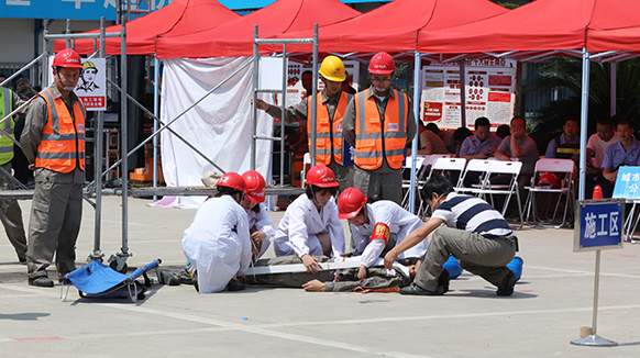 為進一步做好安全生產應急預案演練工作,提高安全生產應急管理水平和應急救援能力。6月15日上午,由市安監局、市城投集團主辦、橋建集團承辦的2018年應急演練競賽活動,在珞獅南路改造及配套工程項目現場舉行。市城投集團所屬燃氣集團、水務集團、橋建集團、房產集團、道橋公司、新城國博、新區公司、鐵投公司、城市運營公司共9家二級單位,分別針對燃氣管網泄漏、水廠氯氣泄漏、在建工程基坑坍塌、老舊公房開裂、大型展會反恐、貓道作業、高處墜落、防汛、橋梁突發事件等方面,結合各自特點進行了現場模擬競演。演練結束后,專家評審組對各代表隊的演練情況進行了集中點評,并提出了改進完善建議。