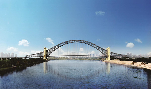 江漢七橋為鋼桁拱橋,跨域漢陽、?口兩個行政區(qū),是武漢市第七座跨漢江通道。大橋距下游知音橋1.2千米,距上游古田橋2.6千米,全長約2.7公里,主橋長672米。主跨長408米,為國內同類橋梁第二。大橋預留雙向8車道空間,橋面寬達52.5米,是漢江上最寬的大橋。大橋建成后,將有效減輕二環(huán)線過漢江交通壓力,將武漢?口、江漢、東西湖、漢陽和沌口五個城區(qū)工業(yè)園區(qū)域進一步有機連接起來,促進漢口漢陽一體化發(fā)展。